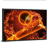This striking canvas art captures the intense energy of baseball amidst swirling flames. The dynamic composition and vibrant colors of orange, yellow, and red evoke a sense of passion and excitement, making it an eye-catching piece for any sports lover.