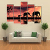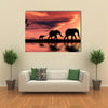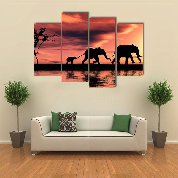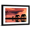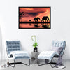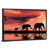 This captivating canvas art features a silhouette of a serene elephant herd against a stunning sunset backdrop. The warm hues of orange and red create a peaceful atmosphere, perfect for adding a touch of nature's beauty to any space.