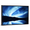 Experience the beauty of the aurora borealis with this canvas wall art. Its swirling patterns of light reflect on a serene lake, creating a dreamy atmosphere that enhances any modern space.
