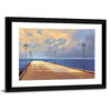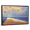 This landscape canvas art features a serene pier leading into a vast ocean under a dreamy sky. With its soft blue and warm sunset hues, it creates a peaceful atmosphere that enhances any space.