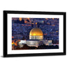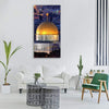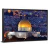 This canvas shows the Dome of the Rock with the Jerusalem skyline, the golden dome softly illuminated at night. The realistic cityscape feels majestic and serene and suits living rooms, studies, or entryways with modern or historic decor.