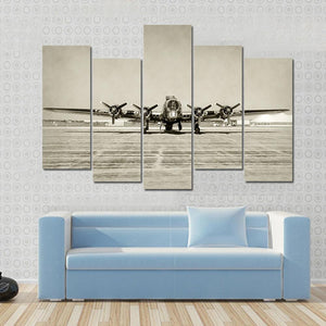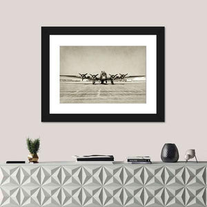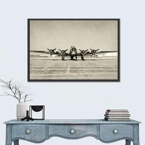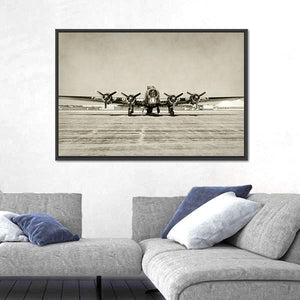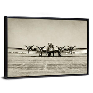 This canvas art captures a powerful multi-engine bomber aircraft in a nostalgic sepia tone. With its symmetrical composition and vintage style, it adds a historical touch to any space.