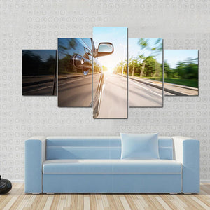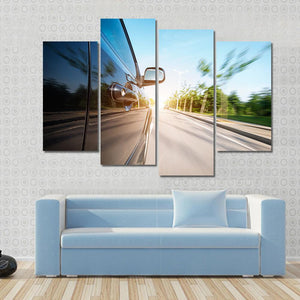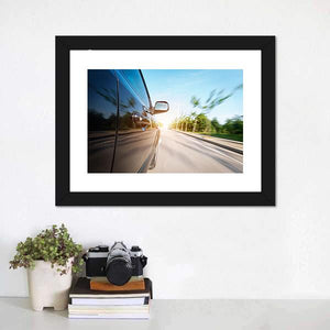 Experience the rush of speed with this canvas featuring a dynamic black car on a vibrant road. The energetic composition captures motion blur, bringing a bright and sunny atmosphere to your space.