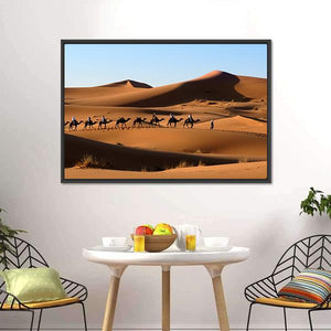 Camel Caravan in Sand Dunes Canvas Wall Art