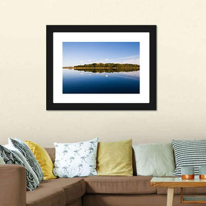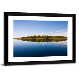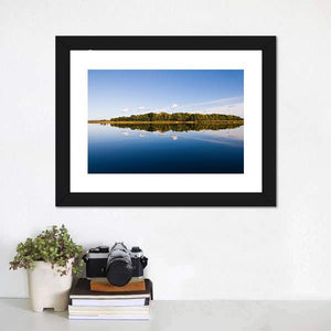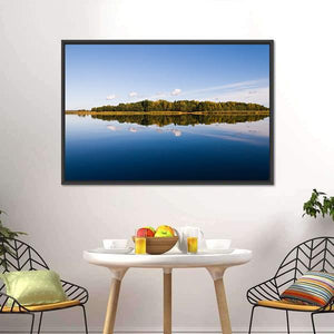 This canvas wall art captures a serene lake surrounded by a vibrant forest, reflecting the sky and clouds above. Its realistic style evokes a tranquil atmosphere, making it an ideal piece to enhance your living space.