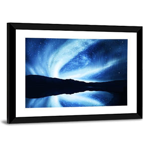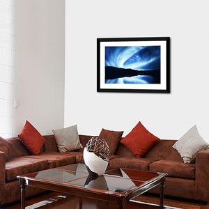 Experience the beauty of the aurora borealis with this canvas wall art. Its swirling patterns of light reflect on a serene lake, creating a dreamy atmosphere that enhances any modern space.