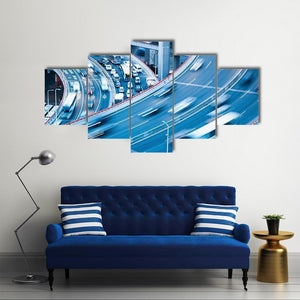 This canvas wall art captures a dynamic cityscape scene of highway traffic and an overpass, portrayed from an overhead perspective. The energetic motion blur on vehicles adds a modern touch, perfect for contemporary decor.