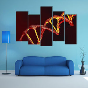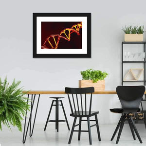 This canvas places a DNA helix at its center in rich reds, golds, and black. Glowing strands create a vibrant, scientific, artistic feel that suits science-themed rooms, medical offices, and contemporary homes.