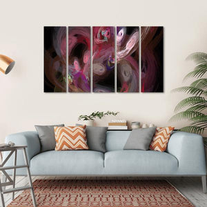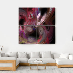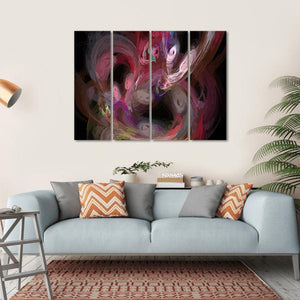 This vibrant abstract wall art features swirling colors and organic forms that create a dynamic composition. With a palette of red, pink, purple, yellow, and black, it brings an energetic vibe to your space.