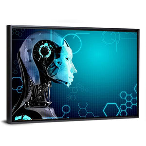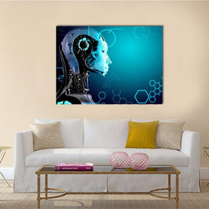 Transparent Robot Head with Blue Circuitry Canvas Wall Art