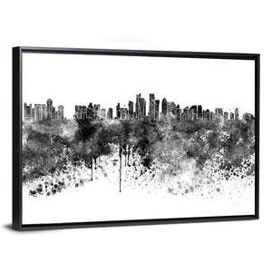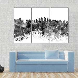 Doha Skyline in Black Watercolor Canvas Wall Art