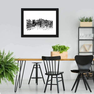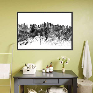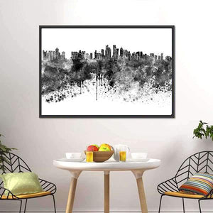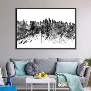 This abstract watercolor captures the Doha skyline in striking black and white. With dynamic splatter and drip effects, it adds a dramatic touch to any modern space.