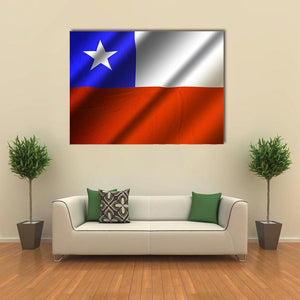 This canvas print depicts the national flag of Chile, rendered in bold red, blue and white. The image follows a rule-of-thirds composition and shows a waving-flag effect with subtle shadows for depth. It fits well with modern home décor and patriotic displays.