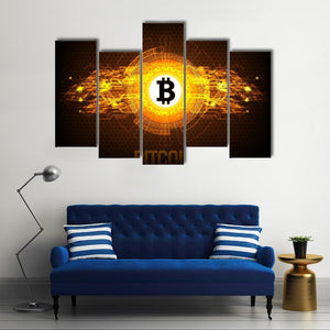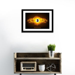 This canvas features the iconic Bitcoin logo set against a dynamic abstract background. With its energetic and technological vibe, it makes a striking statement in any modern space.