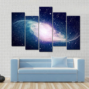 This striking canvas art features a swirling galaxy against a deep black space backdrop. The vibrant blue, purple, and pink hues create a cosmic and mysterious atmosphere, making it a captivating addition to your wall decor.