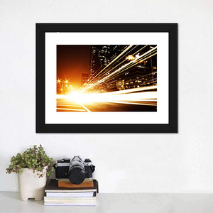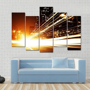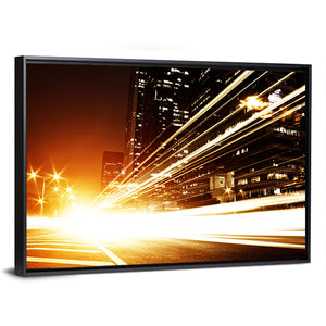 This dynamic canvas art captures city lights and streaking lights with an energetic vibe. Ideal for modern décor, it adds a vibrant touch to any space.