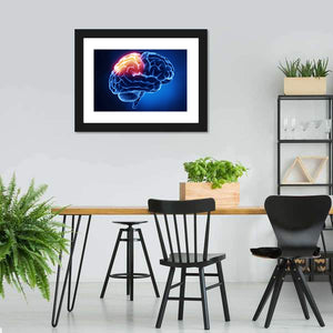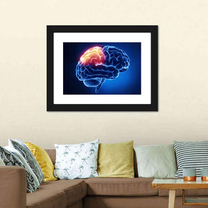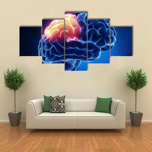 Human Brain X-Ray Canvas Wall Art presents a close-up, detailed view of the brain with glowing sections and a scientific, intense atmosphere in blue, red, yellow, and white. Its modern, abstract look suits science-focused rooms, medical offices, or contemporary home decor.