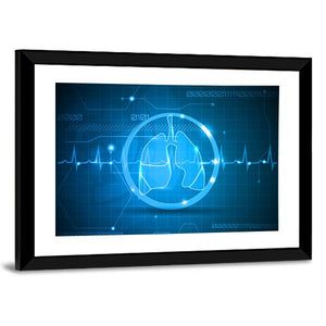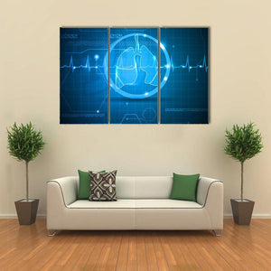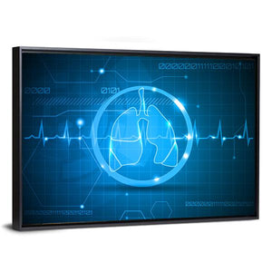 This canvas pairs lungs and an ECG-style heartbeat line with a modern, abstract look inspired by medical data. Blue, white, and green hues combine with a glowing outline, subtle binary code and a grid pattern to create a technological, clinical feel. Place it in a medical office, science-themed space, or a modern home as a clean, contemporary focal piece.