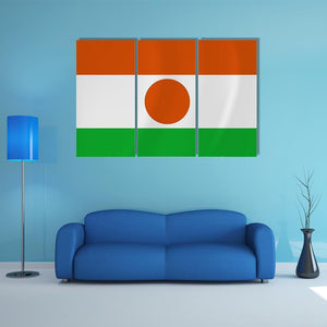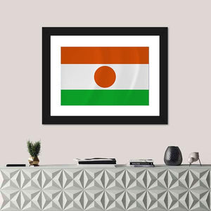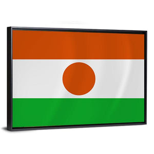 Niger Waving Flag Canvas Wall Art presents the national tricolor — orange, white, and green — with a central orange circle in a clean, symmetric graphic composition. Its simple, patriotic mood and modern graphic look suit contemporary living spaces and home room decor.