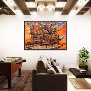 Haunted House Graffiti at Dusk Canvas Wall Art