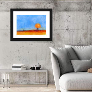 This vibrant oil painting features a peaceful landscape of trees and fields. With its rich palette of blue, orange, yellow, and brown, it adds a calm yet lively atmosphere to any space.