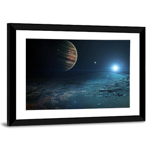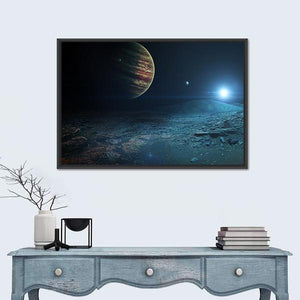 This canvas art features a breathtaking view of Jupiter as seen from its moon, Ganymede. The cosmic blues and vibrant oranges create an awe-inspiring atmosphere that captures the vastness of space.