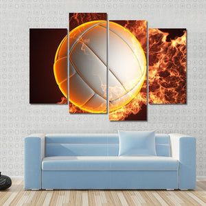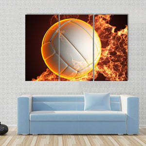This dynamic canvas features a volleyball engulfed in flames, creating an intense and powerful visual. The striking orange and black colors highlight the heat of the scene, making it a captivating addition to your wall decor.