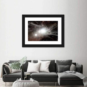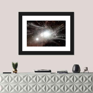 This canvas wall art captures the mesmerizing beauty of a young spiral galaxy alongside a small dwarf galaxy. With swirling gas and dust set against a cosmic backdrop, it evokes a mysterious and awe-inspiring atmosphere, making it a perfect addition to modern space-themed decor.