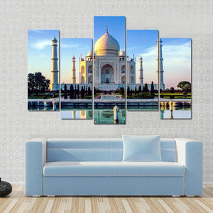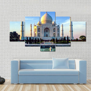 This canvas art beautifully depicts the Taj Mahal against a serene morning backdrop. The intricate details of its architecture and the clear reflection in the water create a majestic scene that captures the essence of this iconic monument.
