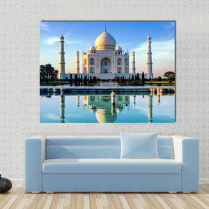 Experience the serenity of the Taj Mahal with this stunning canvas wall art. Featuring a reflective pool and lush garden, it captures the iconic beauty of this Indian landmark. Its majestic and tranquil vibe makes it a perfect addition to any room.