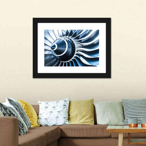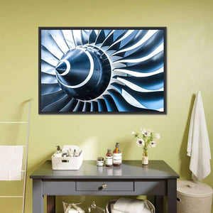 This artwork captures the intricate beauty of jet engine fan blades in a striking close-up view. The metallic finish and sharp details convey a powerful, mechanical essence, making it a captivating choice for modern industrial décor.