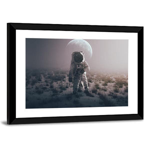 This vertical canvas features an astronaut standing on a lunar surface, surrounded by an expansive alien world. The detailed textures of the astronaut's suit and the vast landscape evoke a sense of exploration and solitude. Ideal for enhancing any space-themed décor.