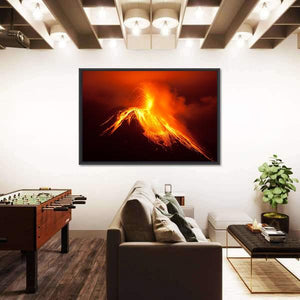 This striking canvas art captures the intense eruption of Tungurahua Volcano, showcasing glowing lava flows and spewing ash against a dynamic night backdrop. The vivid orange and red hues create a powerful focal point in any space.