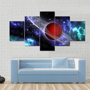 This vibrant canvas features a striking red planet surrounded by swirling nebula clouds and glowing stars, perfect for adding a cosmic touch to your space. Its abstract and modern aesthetic creates a mysterious and awe-inspiring atmosphere.
