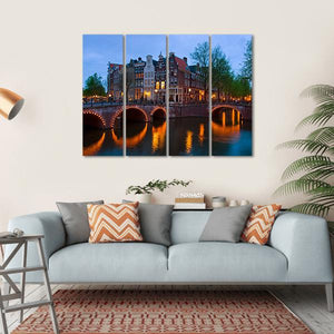 Capture the charm of Amsterdam with this canvas wall art featuring tranquil canals and illuminated bridges. The vibrant colors and reflections create a soothing atmosphere, making it a beautiful addition to any space.