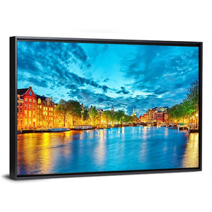 This vibrant canvas artwork captures the serene beauty of Amsterdam's Amstel River. Featuring a scenic view of the canal framed by buildings and trees, it brings an urban yet peaceful atmosphere to any space.