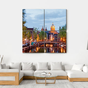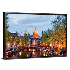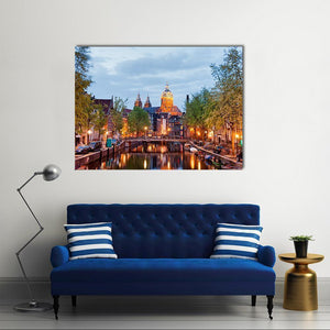 This serene canvas art captures a tranquil Amsterdam evening, showcasing the beauty of its canals, charming buildings, and iconic bridges. With soft reflections of streetlights in the water, it brings a picturesque atmosphere to any space.