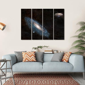 This canvas art beautifully captures the awe-inspiring Andromeda Galaxy, inviting you to explore a cosmic scene filled with deep blues, stark whites, and hints of pink. Its photorealistic quality provides a vibrant portrayal of swirling galaxies and scattered stars, enriching your space with a sense of vastness and wonder.