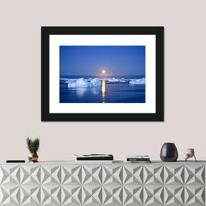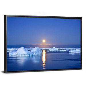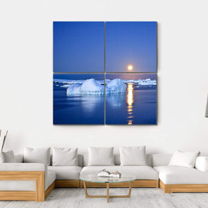 Capture the serene beauty of Antarctica with our canvas wall art featuring icebergs and moonlit water. The ethereal palette of blues, whites, and yellows evokes a peaceful, cold atmosphere, perfect for adding a touch of nature's realism to your space.