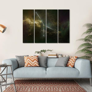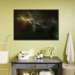 This Cancer Constellation canvas art showcases the beauty of celestial bodies intertwined with swirling nebulae. The composition features glowing constellation lines in a rich palette of greens, purples, and yellows, creating a mysterious and serene atmosphere perfect for any space.