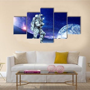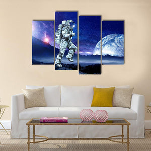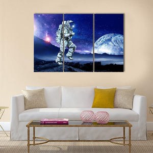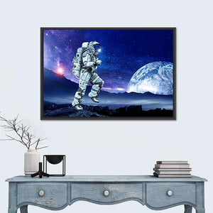 Astronaut Running Beneath a Large Moon Canvas Wall Art
