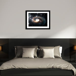 This captivating canvas art features a black hole surrounded by swirling accretion disks, glowing nebulae, and distant stars. Its cosmic and mysterious atmosphere invites contemplation and wonder, making it a striking addition to any modern décor.
