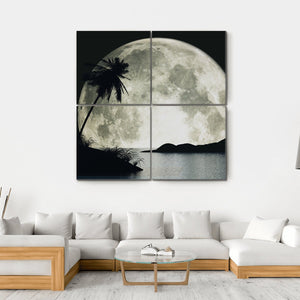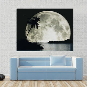 The Moon Island With Palm canvas art captures a serene scene of a full moon illuminating a tranquil ocean, with a silhouetted palm tree resting on the island. This dramatic piece invites calm and reflection, making it an ideal addition to any peaceful space in your home.