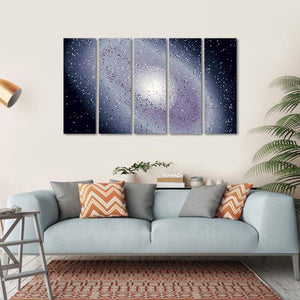 Explore the depths of space with this captivating spiral galaxy illustration. Featuring swirling spiral arms and dense star clusters in a cosmic palette of blue, purple, and black, this artwork evokes a sense of vastness and ethereal beauty.