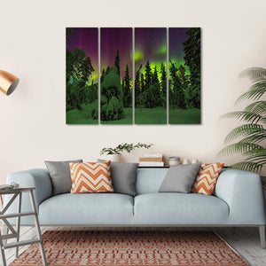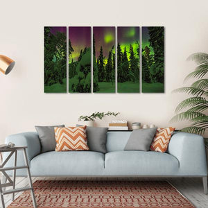 Experience the serene beauty of the aurora borealis in this breathtaking canvas art. Capturing the distinct bands of light against a backdrop of snow-covered forests and a starry night sky, it evokes a magical and awe-inspiring atmosphere.