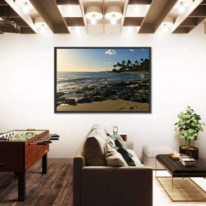 Capture the tranquil beauty of Poipu Beach Park on Kauai with this photo-realistic canvas art. Featuring gentle ocean waves, vibrant palm trees, and soft footprints in the sand, this piece brings a serene and tropical vibe to any space.