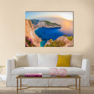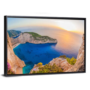 Capture the serene beauty of Navagio Beach in Greece with this breathtaking canvas wall art. Featuring a high-angle view of the iconic shipwreck and steep limestone cliffs, it brings a tranquil, tropical atmosphere to your space.