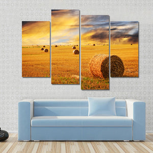Capture the serene beauty of rural landscapes with the Golden Sunset Over Farm Field With Hay Bales Canvas Wall Art. This expertly crafted piece highlights the warm, glowing hues of sunset illuminating rolling fields and rustic hay bales, bringing a peaceful yet evocative ambiance to any room. Ideal for those who appreciate natural scenery and wish to elevate their home decor with an artwork that balances tranquility and timeless charm.