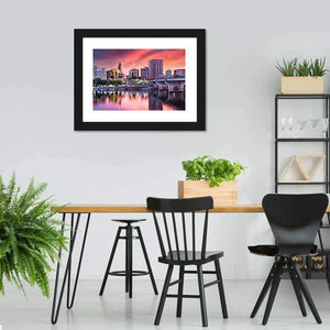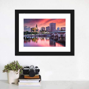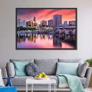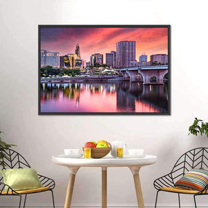 Capture the vibrant energy of Hartford with this cityscape canvas art. Featuring a picturesque skyline, serene river, and stunning bridge under soft pink and orange hues, it brings a lively yet calm feel to any space.