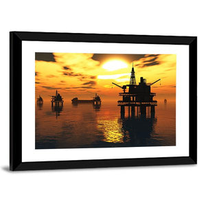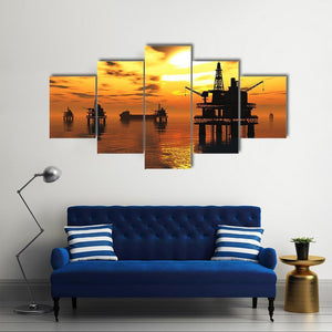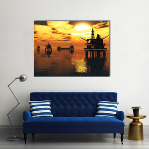 Oil Rigs and Tankers at Sunset Canvas Wall Art